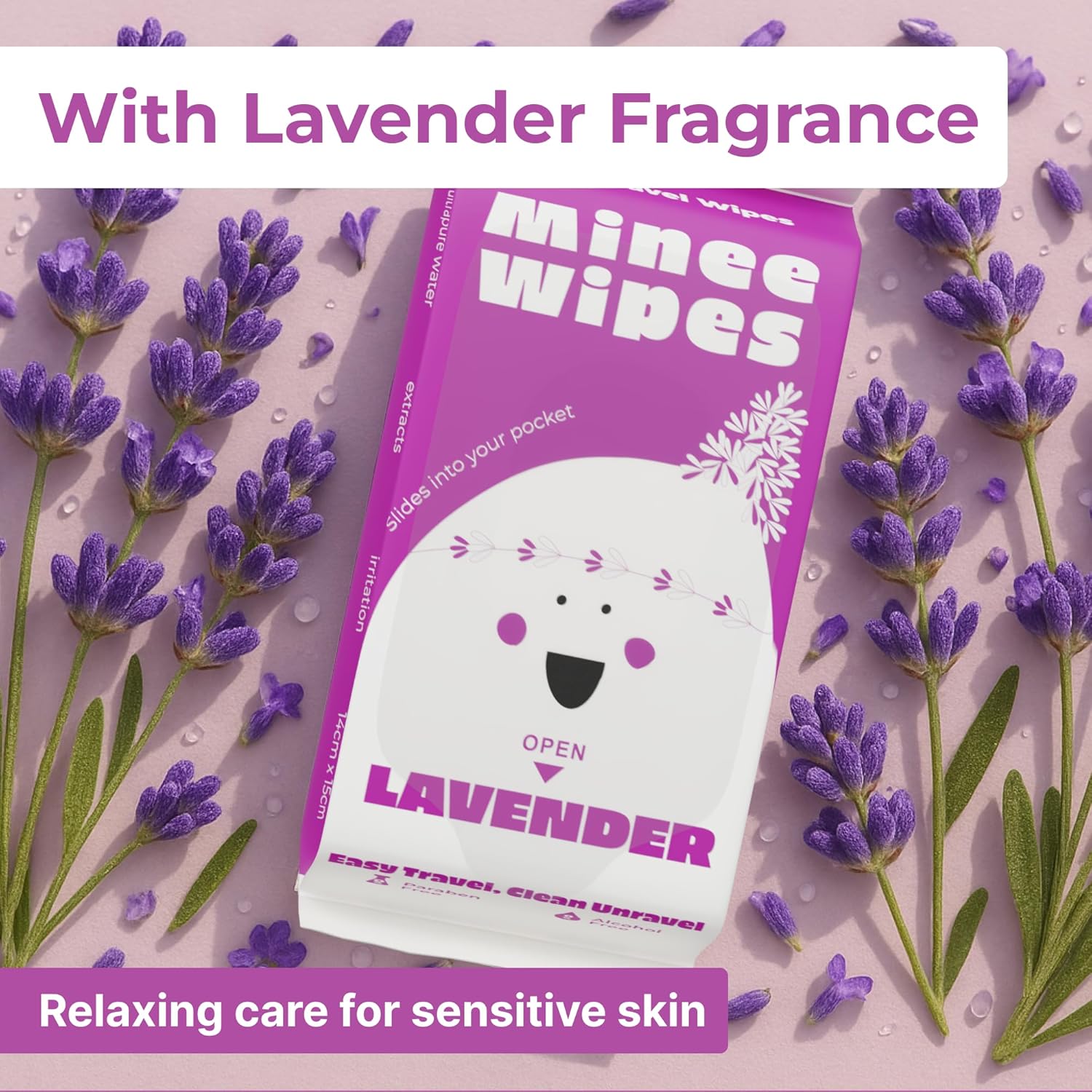 💜BABY CLASS SAFETY: Minee wipes are crafted with a scientific safe formula featuring 99.5% EDI ultrapure water and natural plant extracts. These lavender fragrance, alcohol-free wipes are perfect as wipes, wipes scented, and hand wipes for kids, ensuring gentle care for sensitive skin.